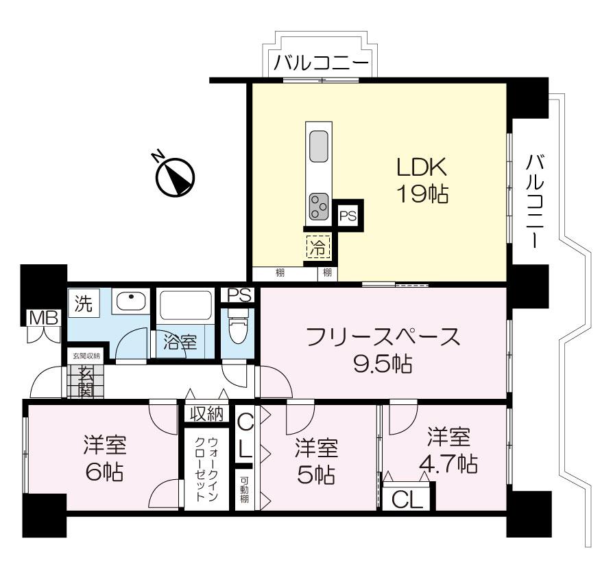 | 専有面積 | 94.6㎡ | バルコニー面積 | 17.19㎡ |