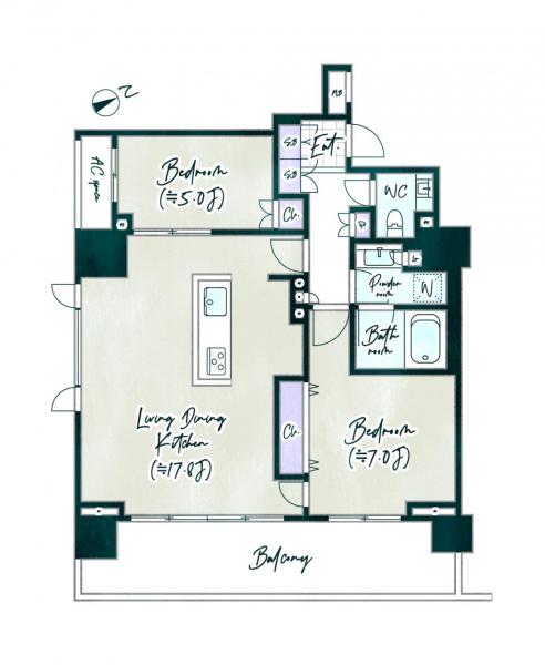 | 間取り/間取り詳細 | 2LDK / LDK17.8畳・17階・1室 / 洋室5畳・17階・1室 / 洋室7畳・17階・1室 | ||