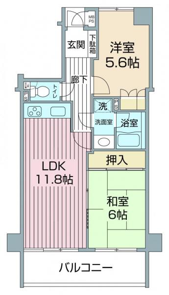 | 間取り/間取り詳細 | 2LDK / 和室6畳・2階・1室 / LDK11.8畳・2階・1室 / 洋室5.6畳・2階・1室 | ||