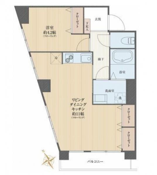 | 間取り/間取り詳細 | 1LDK / LDK11畳・4階・1室 / 洋室4.2畳・4階・1室 | ||