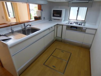 キッチンはL型、床下収納もあります。